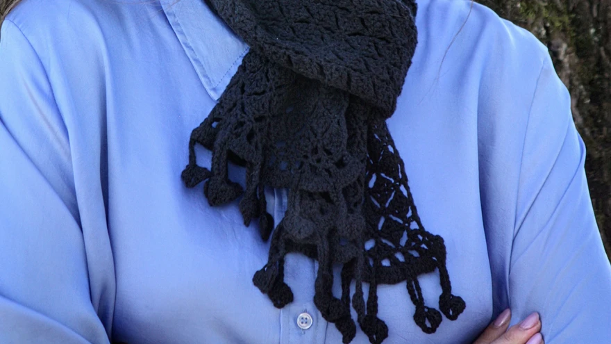 | foto: Mari KinkarLõikelt lihtsakoeline sall, millele ilmet annab kahandavatest ja kasvatavatest Y-silmustest koosnev teemandikujuline muster. Puuvillasest ja villasest segulõngast salli saab kanda nii suvel kui ka talvel.