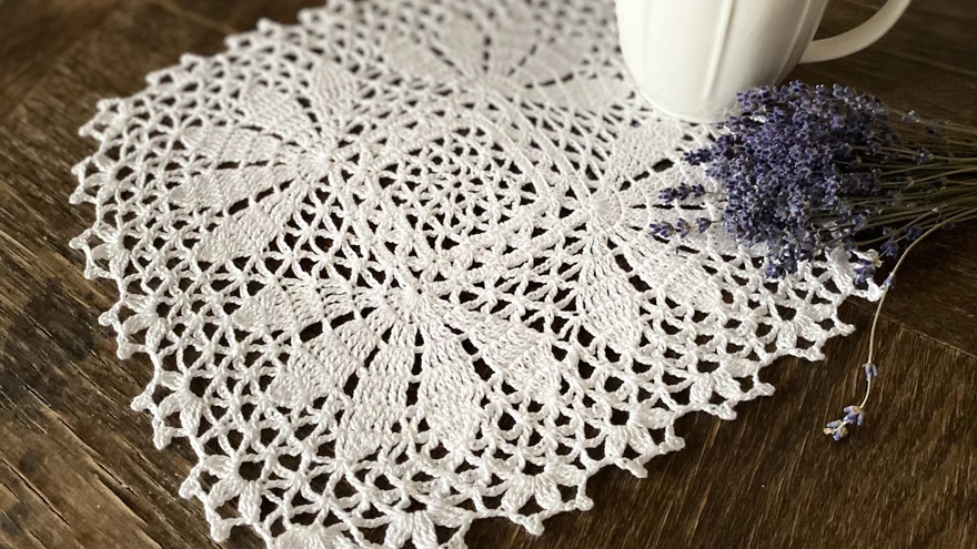 Väike linake õielehtedega | foto: Ruta TännavSelle tillukese liniku muster jäi silma 1939. aasta Ajakirja Kõigile märtsinumbrist. Ajakirjas oli kolm sama mustri, kuid erineva kujuga linikut. Mustriskeemi sellel eraldi ei olnudki, juhend oli kirjutatud teksti vormis, millest oli aga väga keeruline aru saada. Otsustasin skeemi joonistada, esialgu väikesele neljakandilisele variandile.