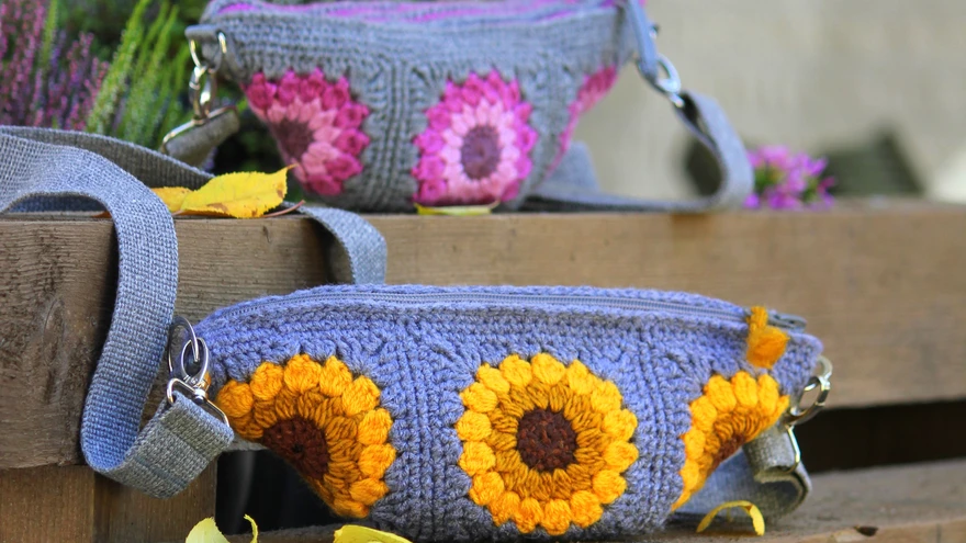 Mahukas üleõlakott | foto: Siire VanaseljaRisti üle õla kantav nn crossbody-kotike on väike, mugav ja praktiline. Neljast ruudust koosnev kott valmib kiiresti ja kuna materjali kulub vähe, saab kõik värvikad lõngalõpud koti sisse särama heegeldada.