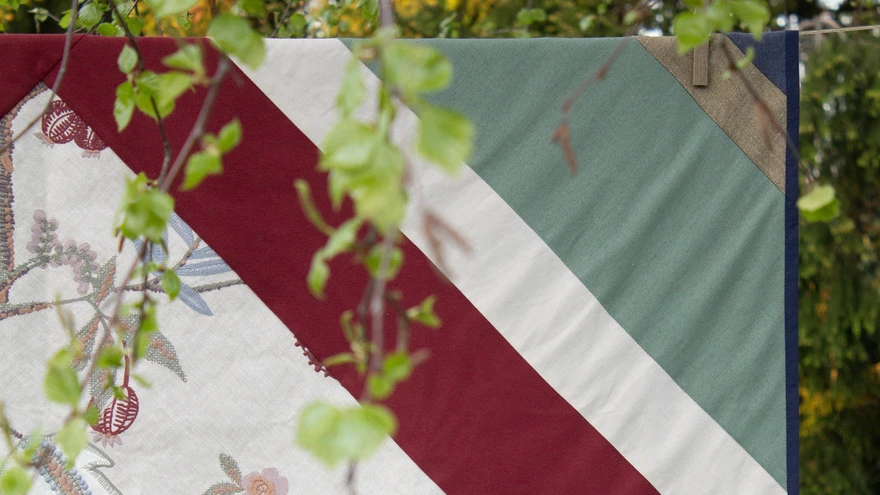 Ühenda kangajupid eelnevalt kombineeritud mustri järgi 144 x 194 cm suuruseks tükiks.