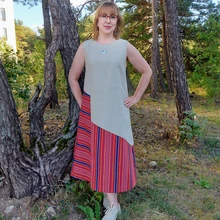 Žürii kommentaarid: „Sellisel kujul tõesti uudne lahendus. Meeldib, et triibud jooksevad nii horisontaal- kui ka vertikaalsuunas ja et on kombineeritud Eesti ja Läti kangaid, sest miks mitte! Väga hea tunnetusega kokku pandud; Moodne lõige, nüüdisaegne, lihtne ja samas tuntavalt rahvuslik välimus; Oskuslikult kokku pandud üheks hästi mõjuvaks tervikuks; Väga loominguline ja uudne, värskelt mõjuv ebasümmeetriline lahendus.”