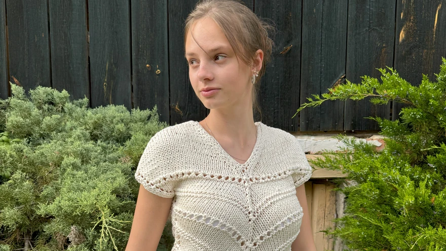 Omapärase väljanägemise topp paistab silma | foto: Ruta TännavSuvi kestab veel! Puuvillasest lõngast kootud väga omapärase lahendusega topil oleks nagu eraldi passeosa ja selline kudum juba märkamatuks ei jää.