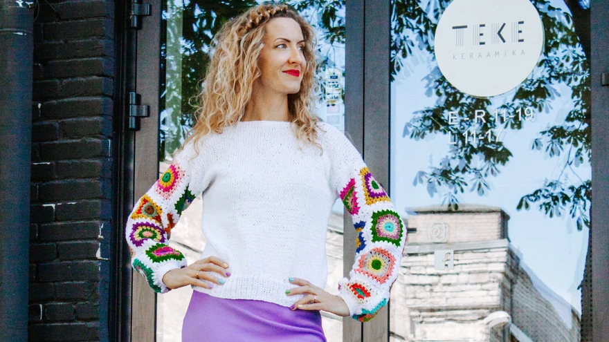 Koo ja heegelda endale suvine džemper | foto: Laura Karro, Andra StrandbergÜhilda omavahel kudumine ja heegeldamine ning värvilised lõngajäägid. Kui siin on varrukateks heegeldatud vanaemaruudud, siis kehaosa on valminud parempidises koes kududes.
