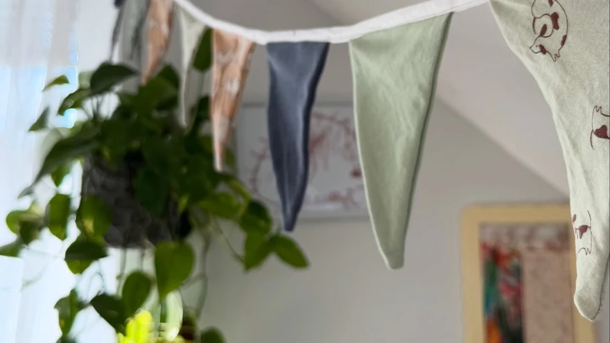 Kui ka sinul on kogunenud hunnik lasteriideid, millel siin-seal plekid või augud ja mida pole kellelegi edasi anda, siis õmble neist lipukett, nagu tegi Anette. Saad ilusa sisustuselemendi ja tükikese mäletust.