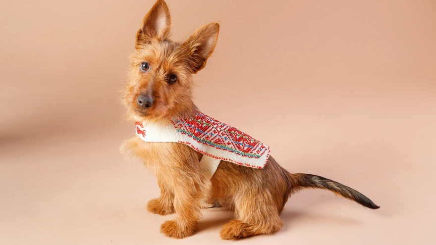 Petseri vöökirjaga seljavaip koerale. Autor: Lenna Schmidt | foto: Martin AhvenHelmespälitega koeravest on tõeline pärl ja püüab pilke. Helmed muudavad vesti veidi raskeks ja mõjuvad koerale mõnusa raskustekina.