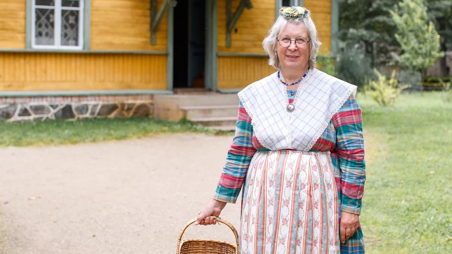 Hilja Väravas Eesti Vabaõhumuuseumi Härjapea talu väravas. Hiljal on seljas linnamoelised rõivad, mida kanti 20. sajandi alguses Tallinna linnas ja Tallinna lähikihelkondades. Komplekti kuuluvad kaapotkleit, põll ja rätt ning juukseid kaunistab oub. | foto: Hannes Dreimanis / Õhtuleht„Kui mul noorena ülikooli sisseastumine ei õnnestunud, otsustasin, et käsitöö ja ajalugu jäävad minu hobideks,“ räägib Hilja ning ei kurvasta oma otsuse üle. Nüüdseks on tema harrastustest saanud töö, mida ta naudib igal hetkel.