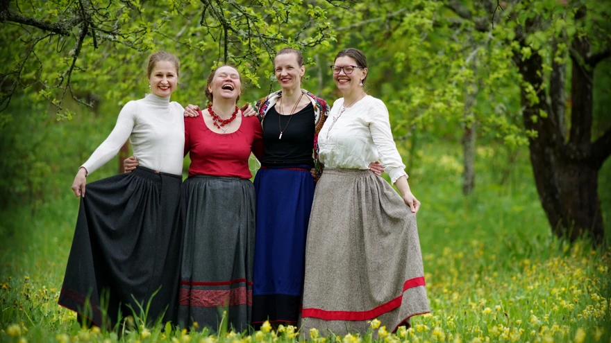 Uhkete kurruseelikute omanikud - nobenäpud Kristi, Kairi, Helen ja Kati | foto: Andres TreialPaljude inimeste elutee on nii selge, et see ilmutab end juba varases lapsepõlves. Aastakümneid tagasi palus kasvataja Kose lasteaias Jõhvi lähistel mudilastel niit nõela taha ajada. Osavamad, kes tegid ülesande ära ühel jalal seistes, pidid saama rätsepaks.