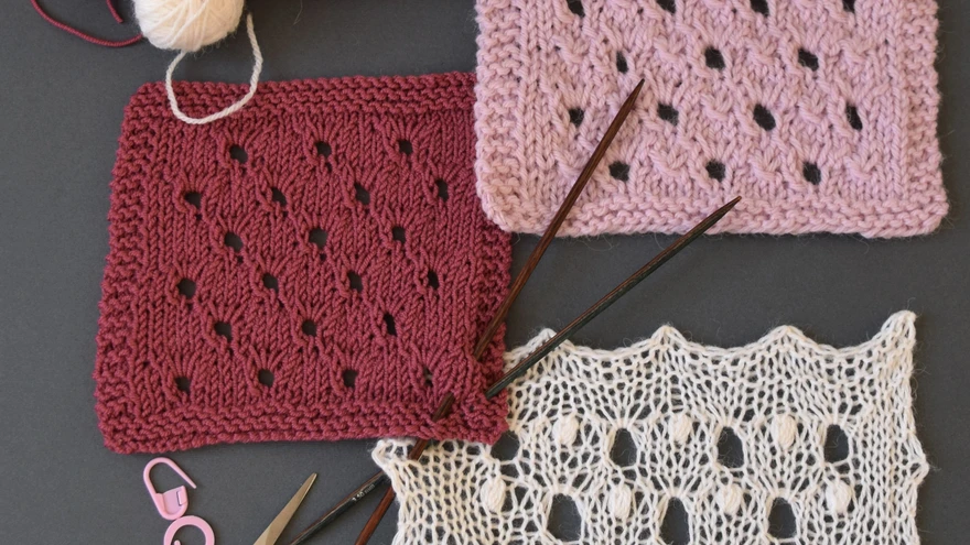 Augud mustris | foto: Ruta TännavSelle mustri augud jäävad tavalistest õhksilmustest efektsemad, kuna need kootakse maha libistatud ja hargnenud silmustest. Need võivad esmapilgul keerulised tunduda, ent kui nipp käes, läheb aukude kudumine juba ludinal. Augumustrit sobib kududa mis tahes jämedusega lõngast ning põnevust saab lisada keerdude ja nuppudega.