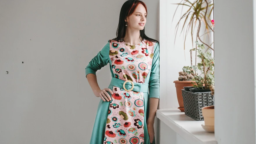 Keskpaneeliga printsessilõikeline kleit on mugav nii kodus kui ka tööl! | foto: Andra Standberg / Strandberg.VisualsTrikooriidest lihtne kleit mõjub kohe viksi ja viisakana, kui sellele lisada uhke pandlaga vöö. Paneelidest koosneva kleidi saad õmmelda oma lemmiktooni kangastest.
