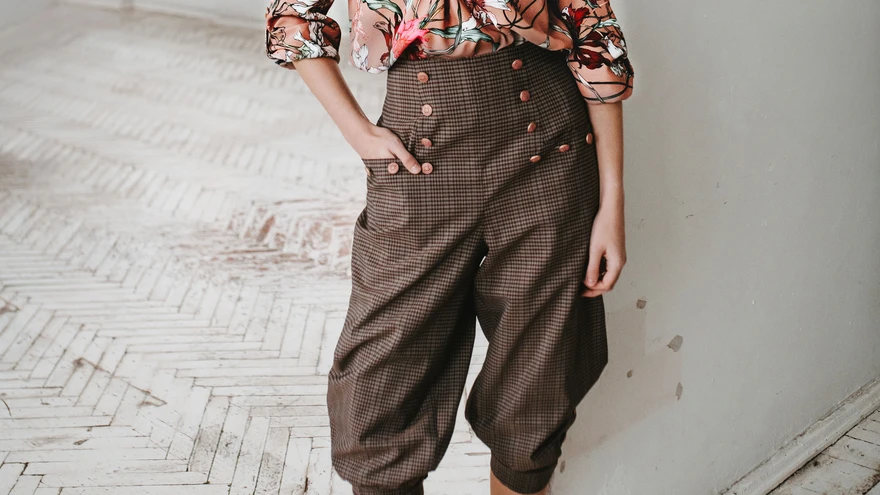 Rahvuslikust moest inspireeritud püksid sobituvad tänapäeva. | foto: Andra Standberg / Strandberg.VisualsRahvuslikust meestemoest inspireeritud püksid on kõrge värvli ja taskute ning allääre manseti ja lõhikuga. Klassikaline kangavalik näeb enda kõrval ka kirkaid aksessuaare. Kanna pükse kõrgete saabaste või kingadega.