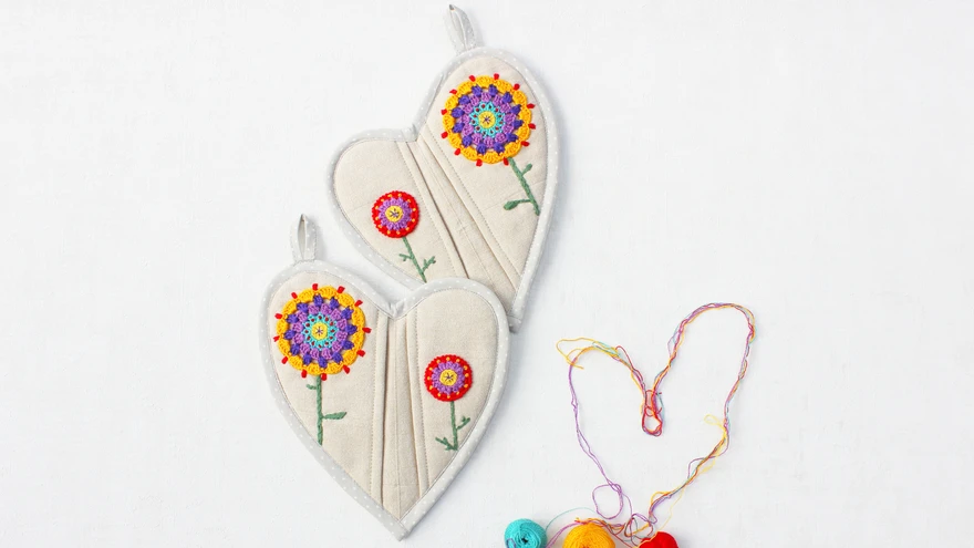 Südamega tehtud! | foto: Siire VanaseljaPisut välja venitatud südamekujulised pajalapid istuvad hästi kätte, neid on mugav kasutada ja need on ka praktilise köögitekstiilina kiiresti valmiv tore kingitus. Vali põhikangaks tagasihoidlik riidetükk, mille taustal tulevad heegeldatud lilled efektselt esile.