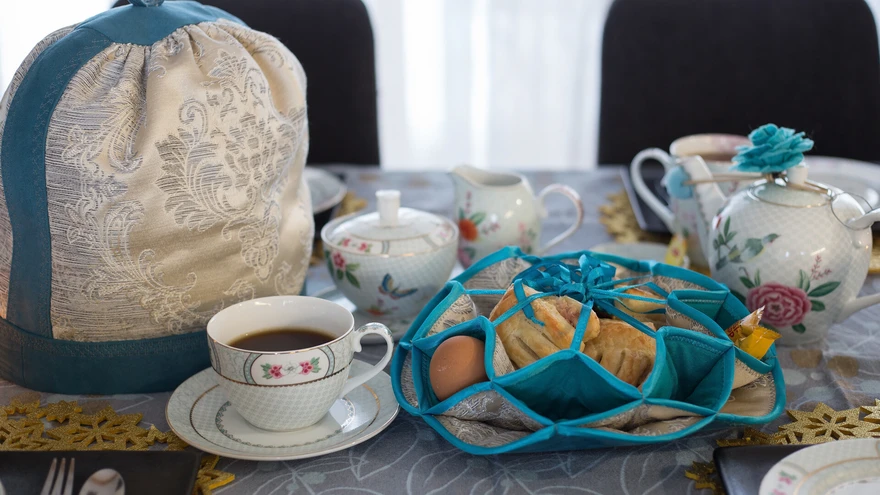 Kohvikannusoojendaja, pirukasoojendaja ja kohvitilga koguja. Autor: Kristiina Nemirovitš-Dantšenko | foto: Marika OhhaIga pidulauda kaunistab enda õmmeldud kohvikannusoojendaja. Õmble komplekti ka taskutega soojendaja pirukatele või küpsistele. Tilgakoguja on nutikas abiline, mis ei luba kohvitilkadel laudlinale tilkuda, lisaks hoiab see paigal ka kohvikannu kaant. Mõnusat kohvitamist!