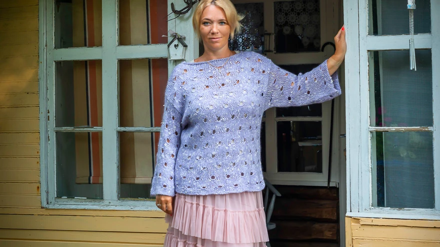 Kootud aukudega kampsun | foto: Triin RaaKoo sügiseks mohääri- ja siidisisaldusega lõngast kampsun. Efekti annab eriline muster ja tulemus on pilkupüüdev.
