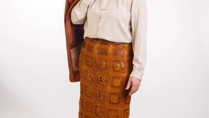 ÕPETUS JA MUSTER: nahktagist kokku heegeldatud seelik