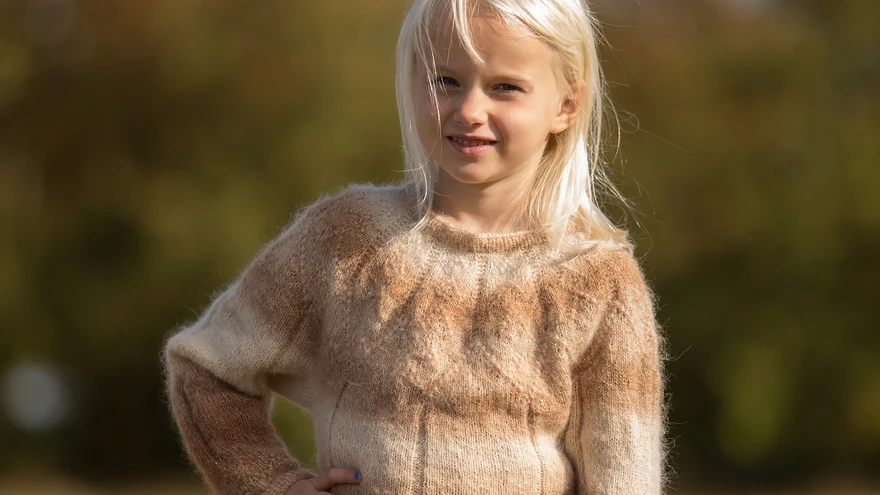 Preilide kampsunAutor: Hilja VäravasModell: Loviise | foto: Marika OhhaMahedas toonis alpaka- ja siidisegusest üleminekuga lõngast kootud kampsunil on armsad väikesed detailid. Pisikesed nupud allservas ja varrukaotstes ning õie kroonlehti meenutav passeosa on esialgu küll märkamatud, aga seda põnevam on mustrit lähemalt uurida.