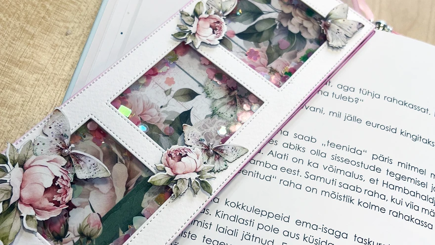 Raputatav järjehoidja | foto: Regina VildoVäikeste akende taga sajaks nagu värvilist ja sillerdavat lund, kui seda shaker card’i stiilis järjehoidjat raputad. Raamitud järjehoidja on armas pisike kingitus kõigile raamatusõpradele.