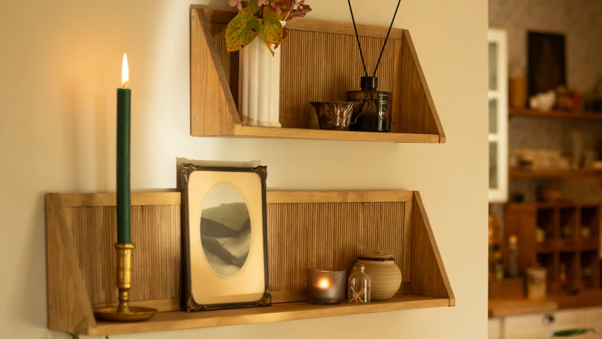 Kitsad riiulid kaunistavad tühja seinapinda | foto: Älis HeinlehtTühjad seinapinnad tuleb alati millegi meeleoluka ja isikupärasega täita. See kitsas kahe ukse vahele jääv sein sai endale kaks ägeda väljanägemisega riiulit. Olemuselt lihtsad, ent samas väga nutikalt efektsed.