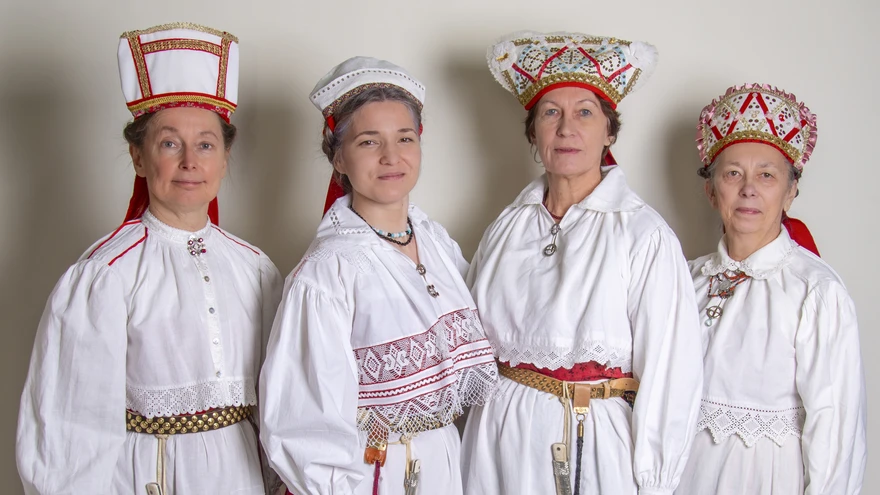 Hiiumaa rahvariiete nõuandekoja eestvedajad | foto: Mart MõnisteHiiumaa rahvariiete piirkond on küll väike, aga ometi paistab oma nelja kihelkonnaga teiste seast välja. Nende eripäraks on kindlasti rõhtudega vööd ja händadega peakatted juuste palmitsemiseks.