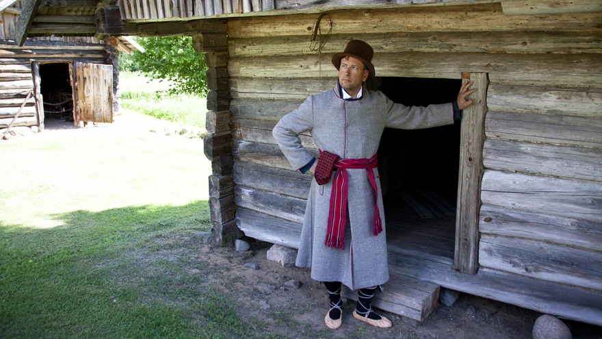 | foto: Vilve OjaVõromaal on meeste pikk-kuub (võru keeles suursärk) koos selle peale köidetava vööga uhke ja esinduslik rõivas. Suursärgil kannab mees alati peal vööd, mis on pikitriibuline ja üsna lai. Võromaal on seda vööd nimetatud vüürätiks just tema laiuse pärast. Kamlottvöö oli ostukaup ja kihelkondlikku eripära sellelt välja ei loe.