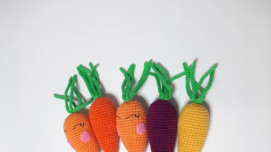Heegeldatud porgandid | foto: Kaire RepponenPorgandid ei kasva ainult peenras. Juurvilju võib kasvatada ka lõngast, kuid need sobivad ainult mängimiseks ja kaissu võtmiseks.
