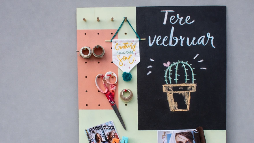 Mitmekülgne plaat tahvli ja hoiutaskutega | foto: Laura KarroMitmekülgsel organisaatoril on nii taskuid, nagisid kui ka tahvel meeldetuletuste jaoks. Värviline ja erinevate aladega täiustatud kõigehoidja tõmbab pilku.
