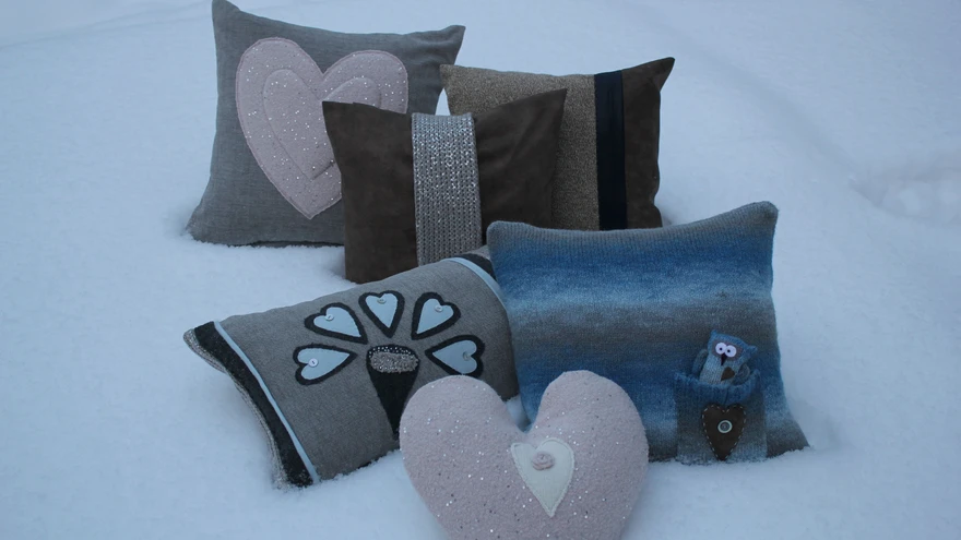 Taaskasutusmaterjalist padjad. Autor: Siire Vanaselja | foto: Siire VanaseljaTeiseringimaterjalidest esemetel on kõik kokkutõmbumised ja värvi andmised juba tehtud ning säilinud on parim: soojus, pehmus ja sära. Meisterda vanast kudumist padi, kaisuloom või hoopis rippuv kaunistus.