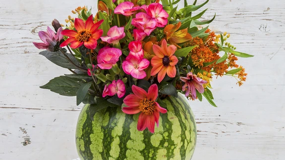 Arbuusist saab ära kasutada ka rohelisekirju koore – lillevaasiks! Kui vili on veel ka oma kasvatatud, on keskkonda jääv jalajälg eriti väike....