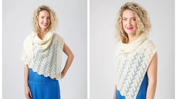 Imelihtsal moel parempidise koepinna sisse ainult õhksilmuseid luues sünnib romantiline volangidega peleriin, mille kasvatuskohad mõjuvad kaunite pitsikobaratena....